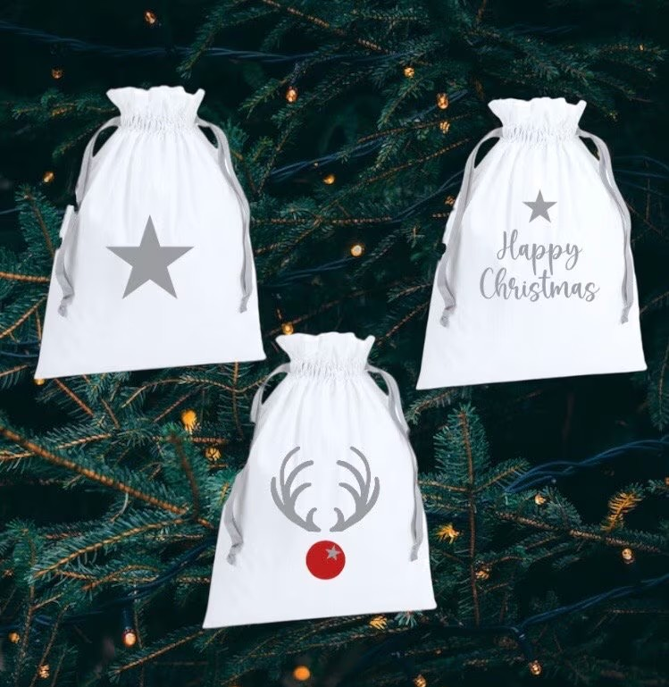 Personalised Organic Cotton Reindeer Christmas Sack Bag